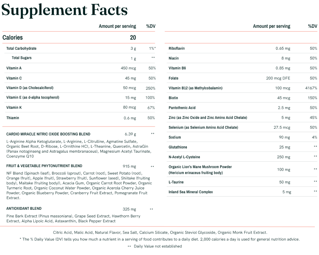 Recently, we discovered by shifting from Erythritol to Organic Monk Fruit and Stevia, Cardio Miracle’s results were even better. Combined with organic blackberry and raspberry flavors, and topped off with a hint of vanilla, the organic fruits and vegetables blend for a more refreshing taste. We think you’ll love it even more!