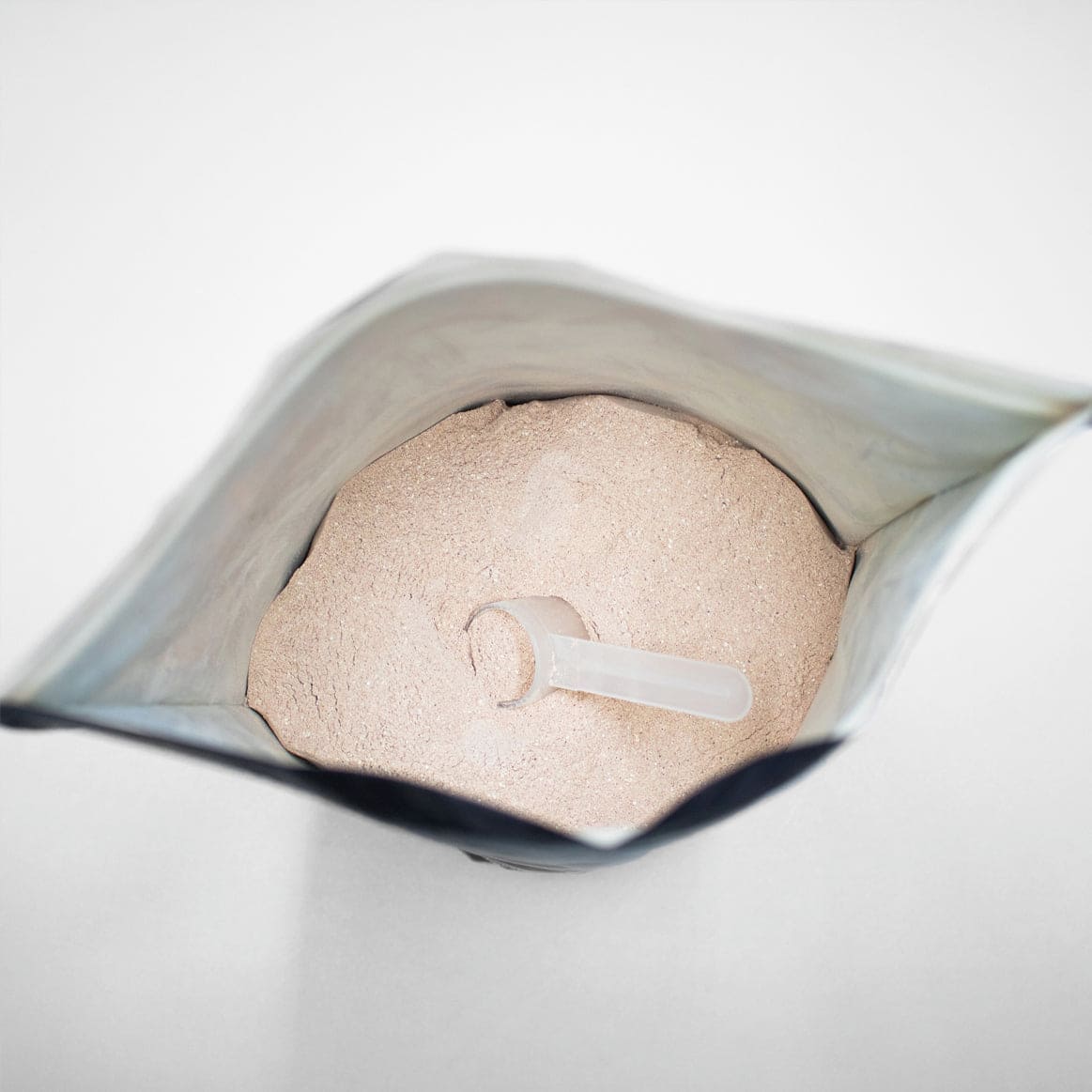 The new scoop is exactly half of one serving. That way, if you want to do four small servings throughout the day, rather than two scoops in the morning and the afternoon, you can do so conveniently. The smaller scoop is also more harmonious with the new soft pouch and less likely to bulk.
